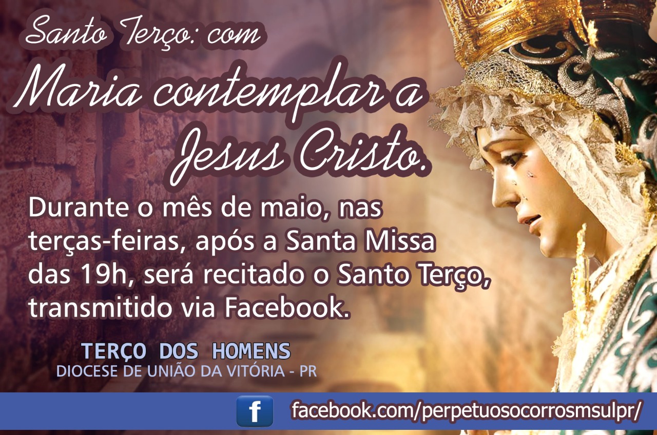 Impulsionados pela espiritualidade que toca o mês de Maio, consagrado pela Igreja como Mês Mariano, o Movimento do ‘Terço dos Homens’ da Diocese de União da Vitória, realizará a Récita do Terço toda terça-feira do mês de maio, por transmissão ao vivo.