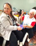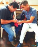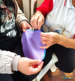 Encerrando o momento de partilha foi realizado a dinâmica da colcha de retalhos, onde cada missionário costurava seu pedaço de retalho ao pedaço do irmão. Assim cada um fazia sua parte contribuindo para a colcha ser costurada e montada como um todo, visando a reflexão de que nossa igreja possui muitos fiéis, cada um a sua maneira, e a vivência do discipulado só acontece plenamente se estivermos interligados e unidos.