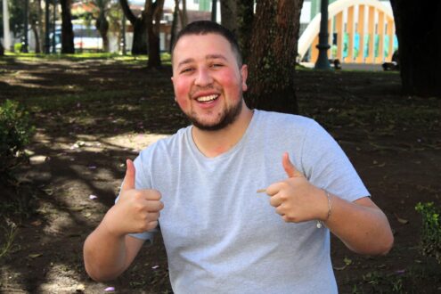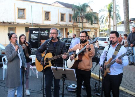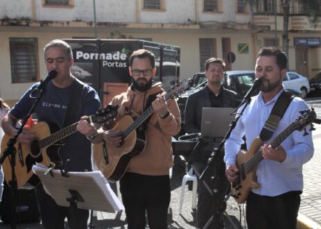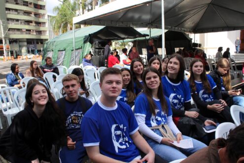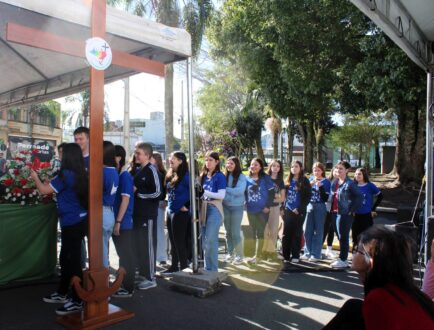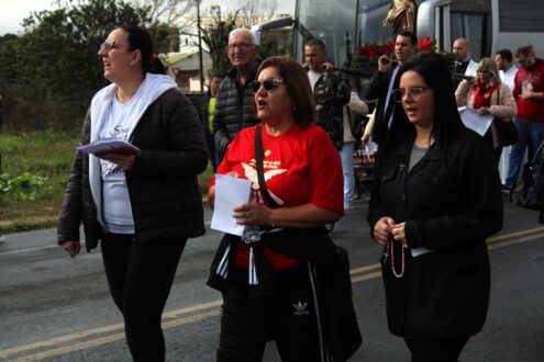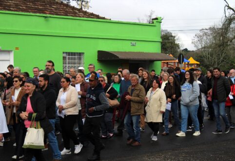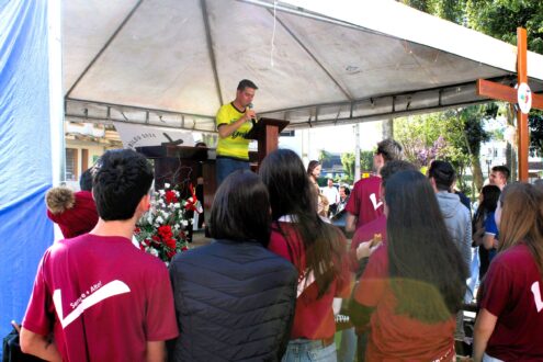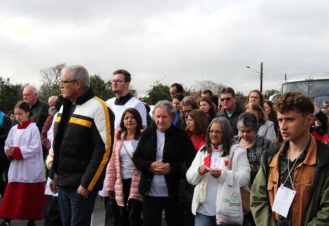 A programação teve início às 7h30, com a recepção calorosa dos participantes na Paróquia Sagrada Família. Um café comunitário foi oferecido como gesto de acolhida, já promovendo ali o espírito de convivência e partilha tão característico do evento. Às 8h30, o Pe. Cristian Boniatti conduziu um momento de espiritualidade e cânticos preparatórios para a caminhada, animando os fiéis e sintonizando os corações com a proposta central da romaria: caminhar com esperança em direção a Cristo.