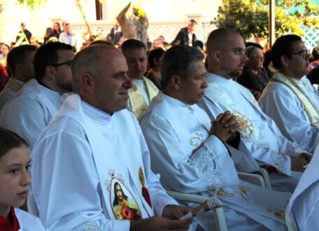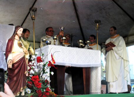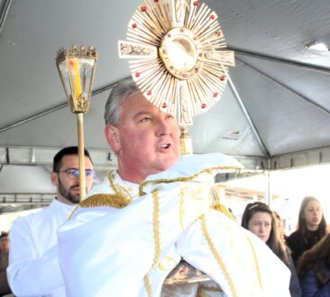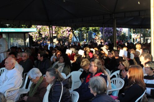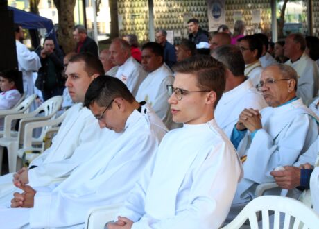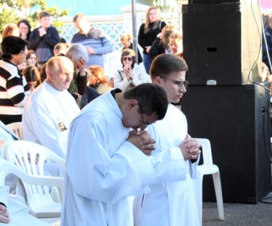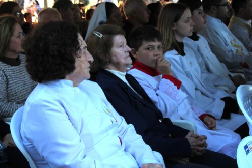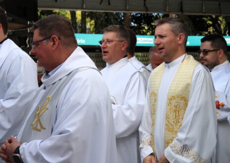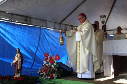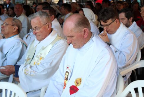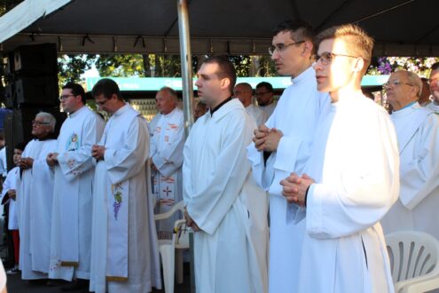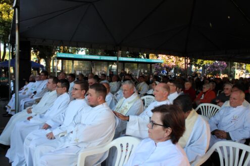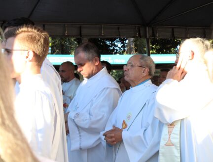 O Terço da Misericórdia, conduzido às 15h pelas Irmãs Saletinas, preparou os corações para o momento culminante da romaria: a Santa Missa com Consagração ao Sagrado Coração de Jesus, celebrada às 15h30 por Dom Walter Jorge, com concelebração do clero diocesano.