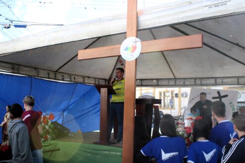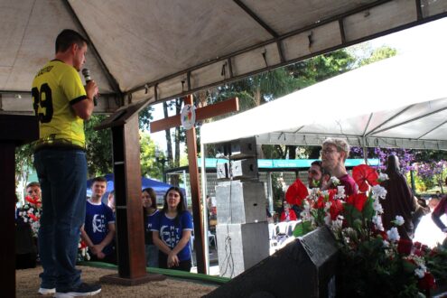Em seguida, às 11h15, o Pe. Valdecir Badzinski, secretário do Regional Sul II da CNBB, proferiu uma palestra inspiradora baseada no tema do evento, ressaltando a figura do Coração de Jesus como fonte de vida nova, esperança e engajamento cristão.