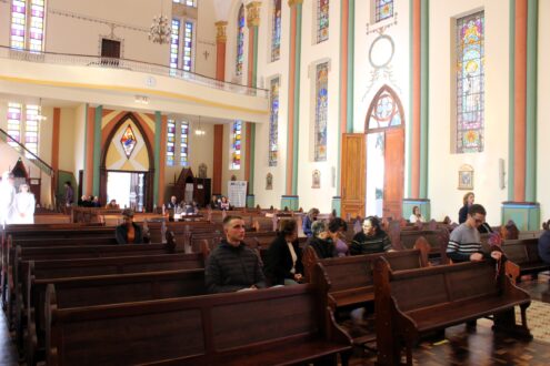 O momento de Adoração ao Santíssimo Sacramento, conduzido pelo Pe. Sidnei Reitz, pároco da Catedral, propiciou instantes de recolhimento e intimidade com Jesus Eucarístico.