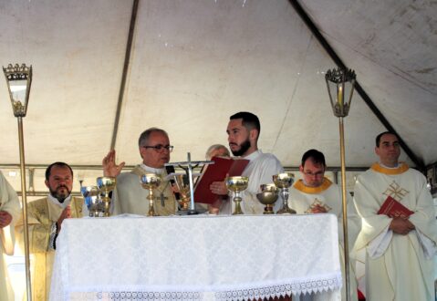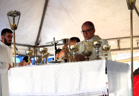 Missa presidida por Dom Walter Jorge, no momento da Consagração