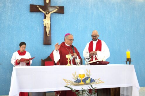 Às 13h, foi celebrada a Santa Missa, presidida por Dom Walter Jorge Pinto, bispo diocesano, e concelebrada pelo Pe. Diego Nakalski, administrador paroquial da Paróquia Santa Bárbara, à qual pertence a capela, e pelo Pe. Marcelo Lara, vigário paroquial. A celebração foi um dos momentos centrais do encontro, reunindo todas as mães para agradecer a Deus e colocar suas intenções no altar.