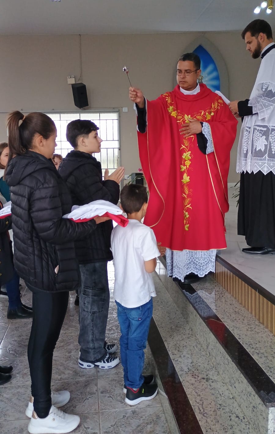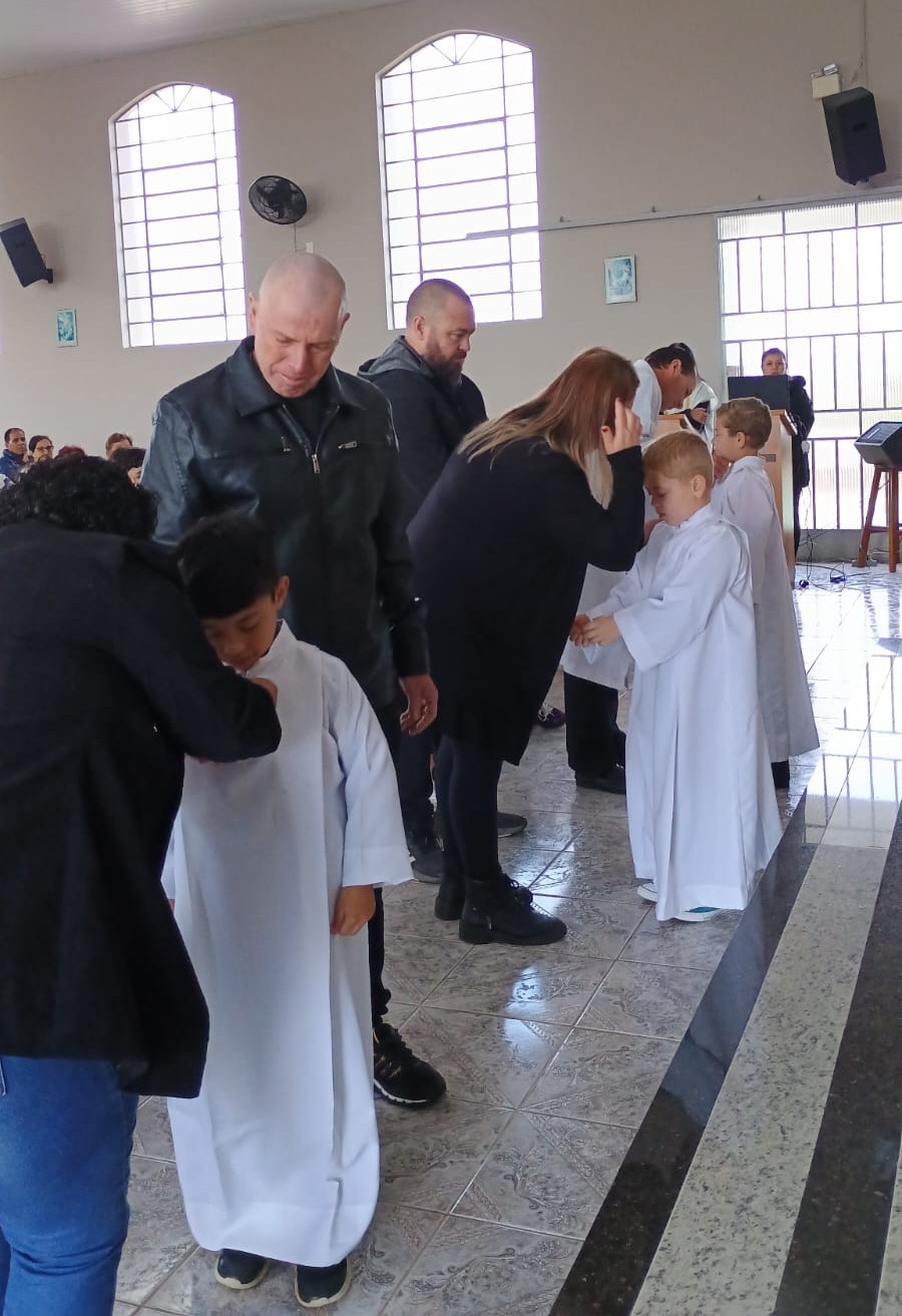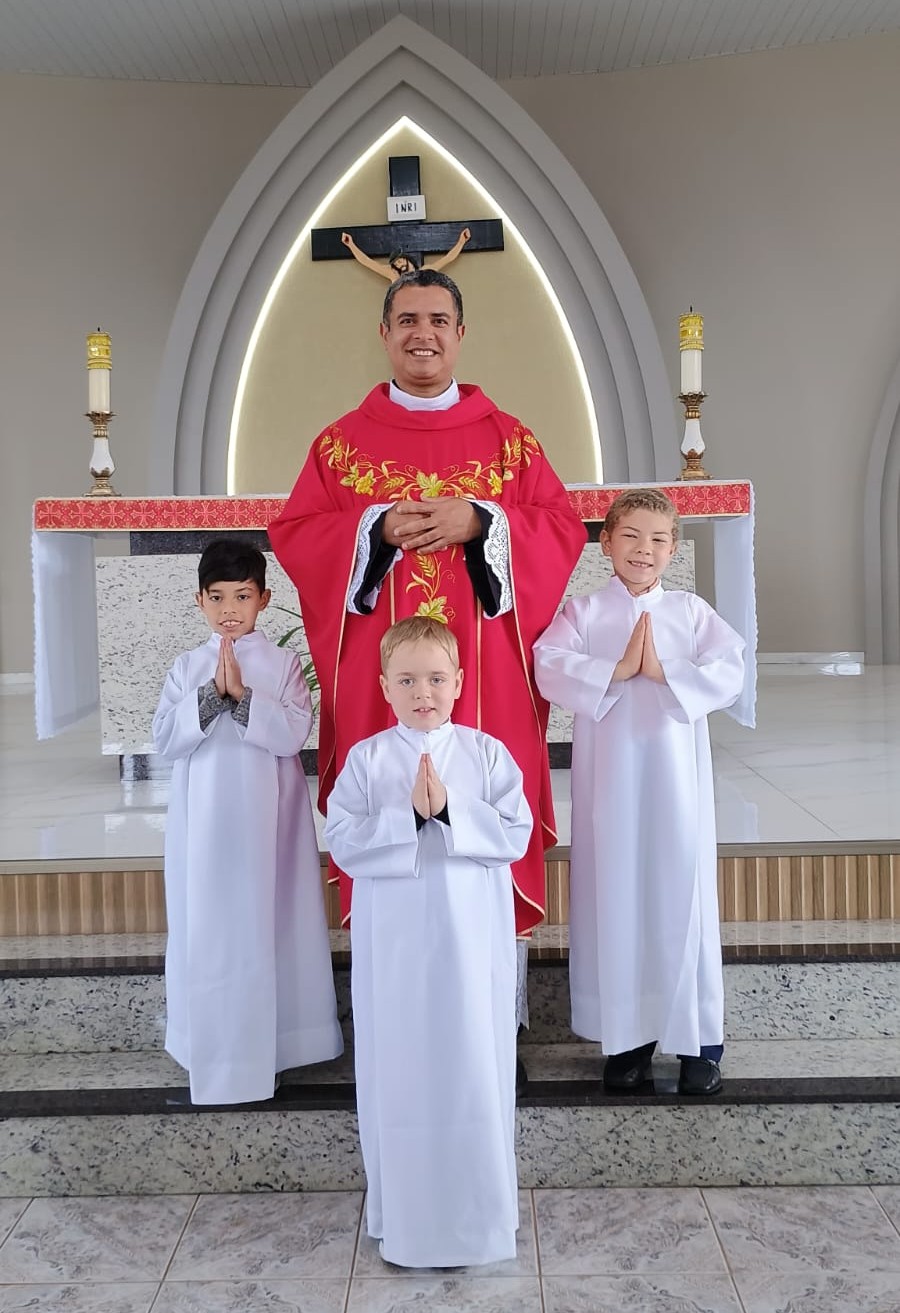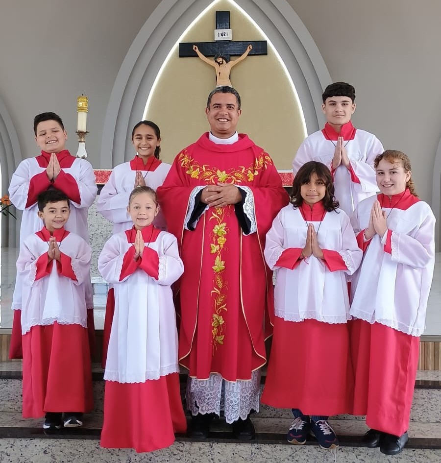 O momento também foi marcado pela acolhida dos coroinhas mirins, que iniciam agora sua caminhada de formação. Para eles, começa um tempo de aprendizado, espiritualidade e amizade, no qual serão orientados a compreender o valor de cada gesto litúrgico e a importância do serviço à Igreja.