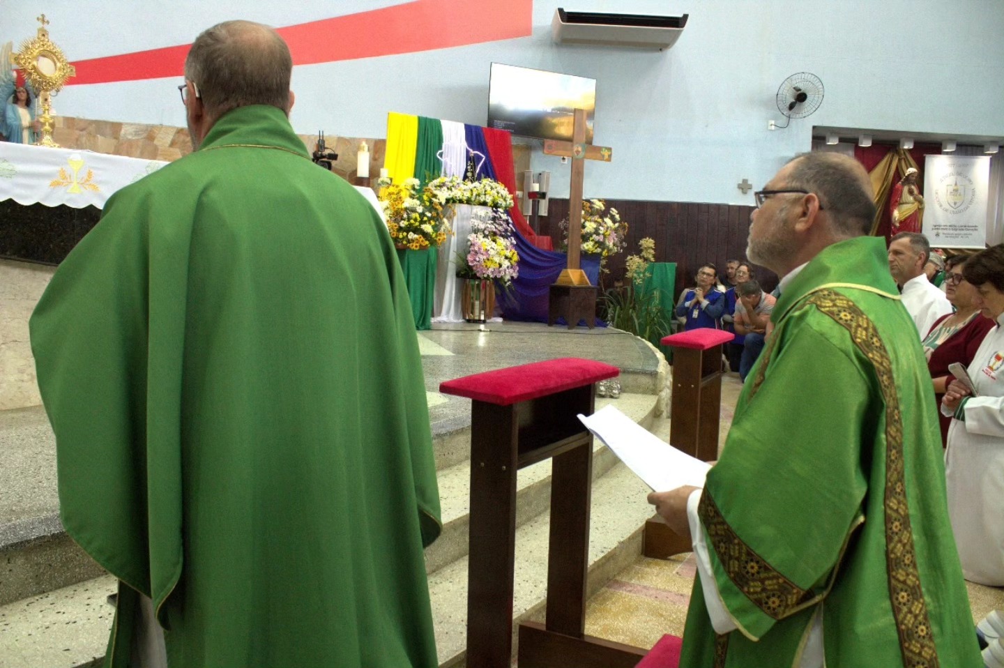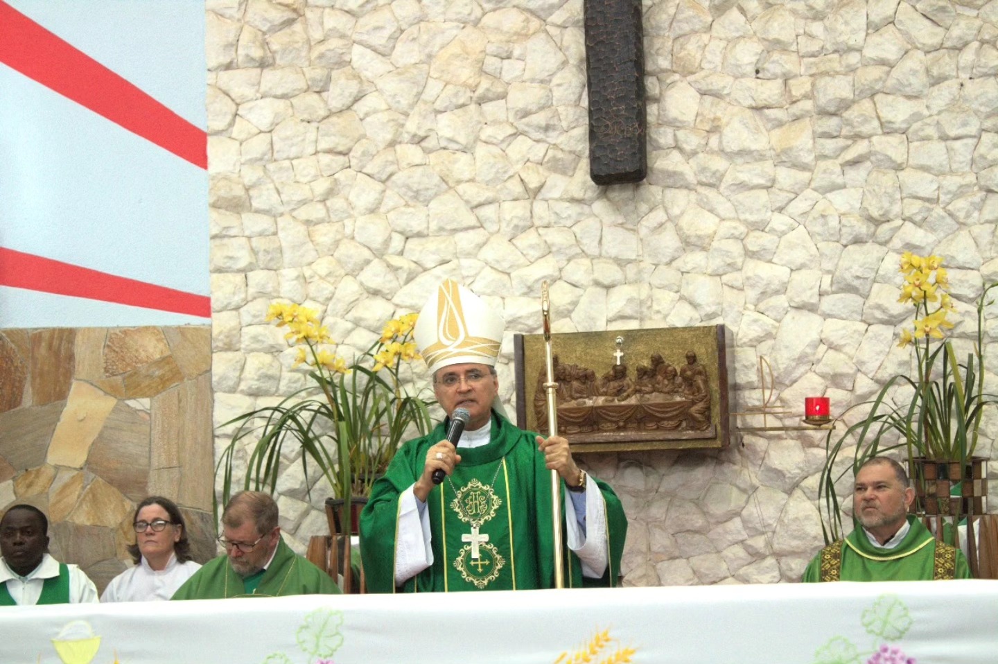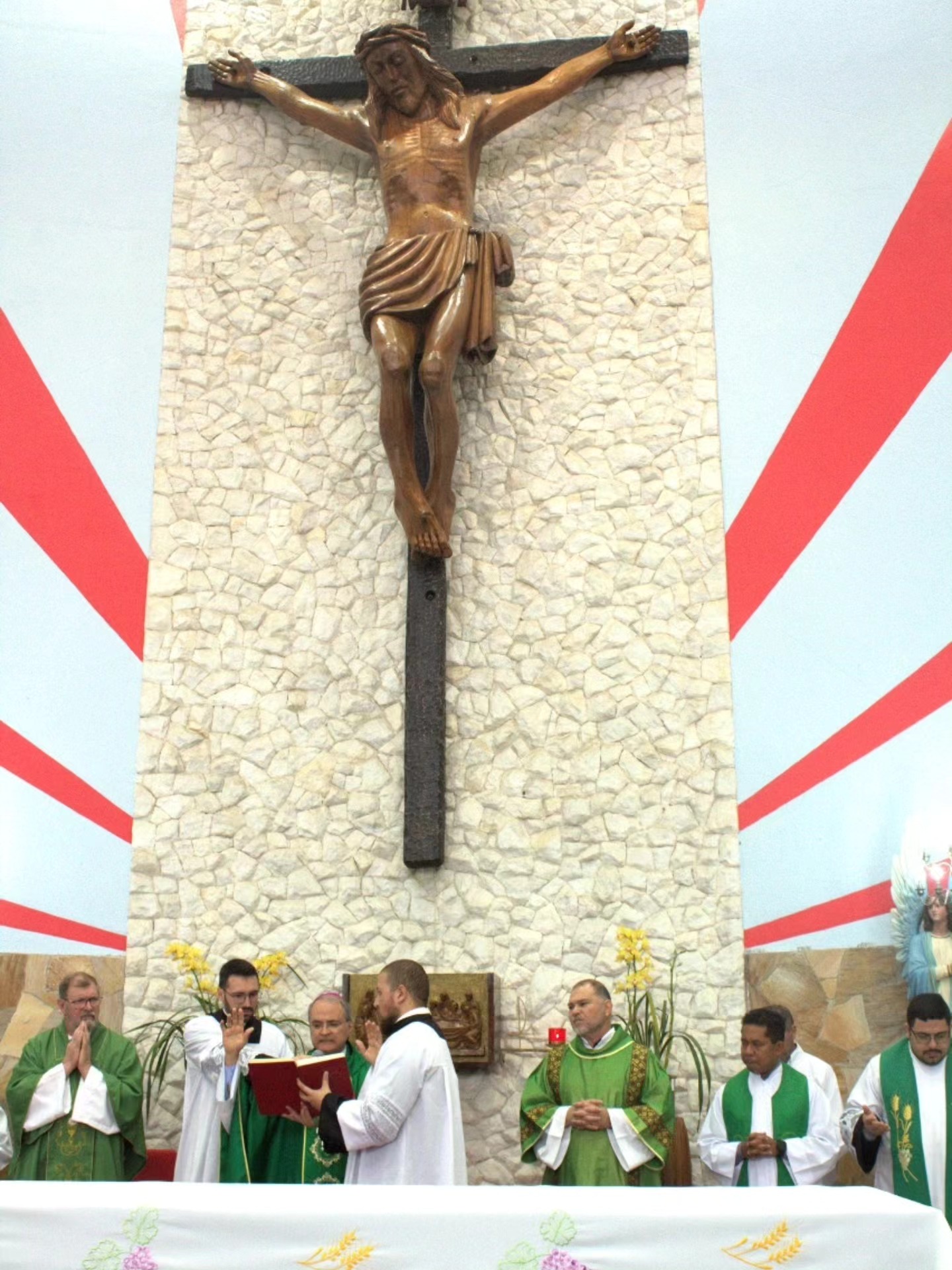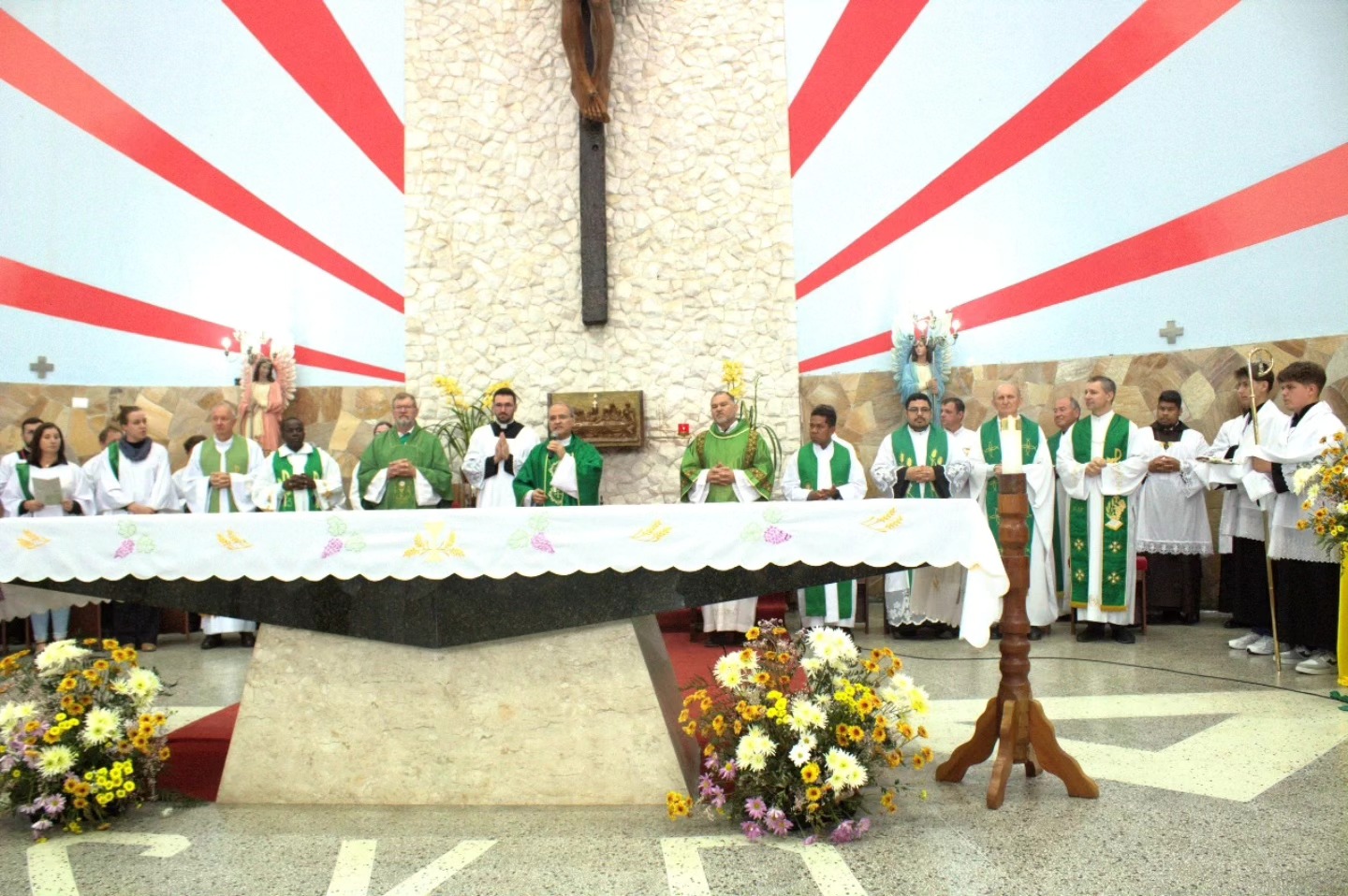 A peregrinação culminou com a Santa Missa, presidida por Dom Walter Jorge e concelebrada por todos os padres e diáconos presentes. Durante a homilia, o bispo diocesano refletiu sobre a essência missionária da Igreja, afirmando: