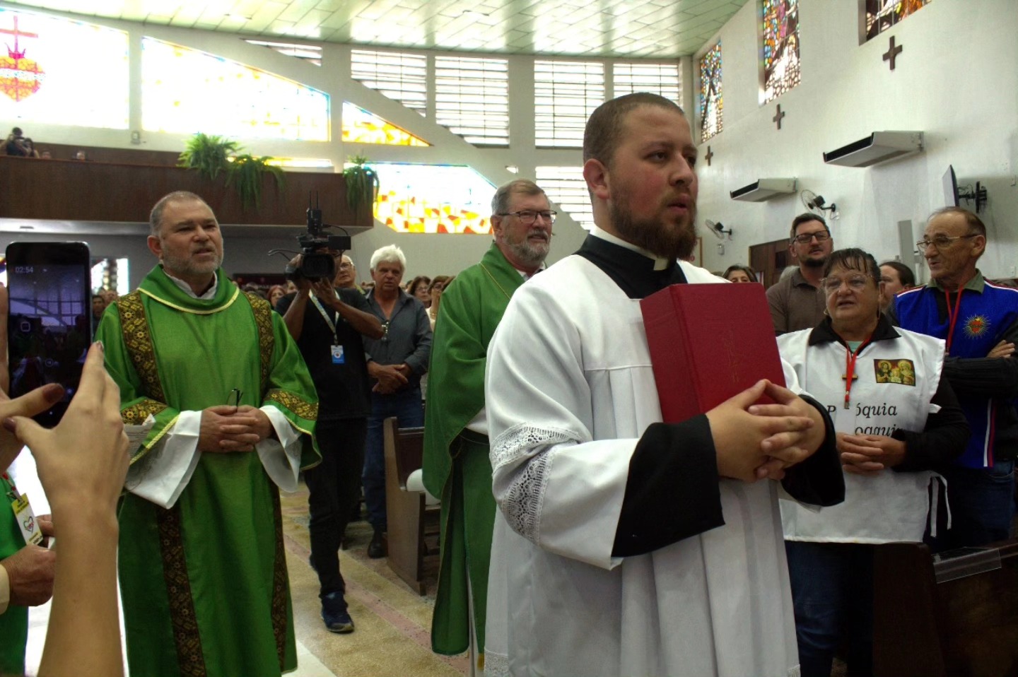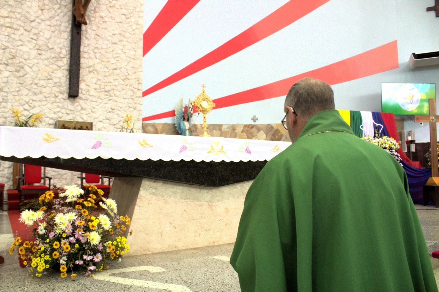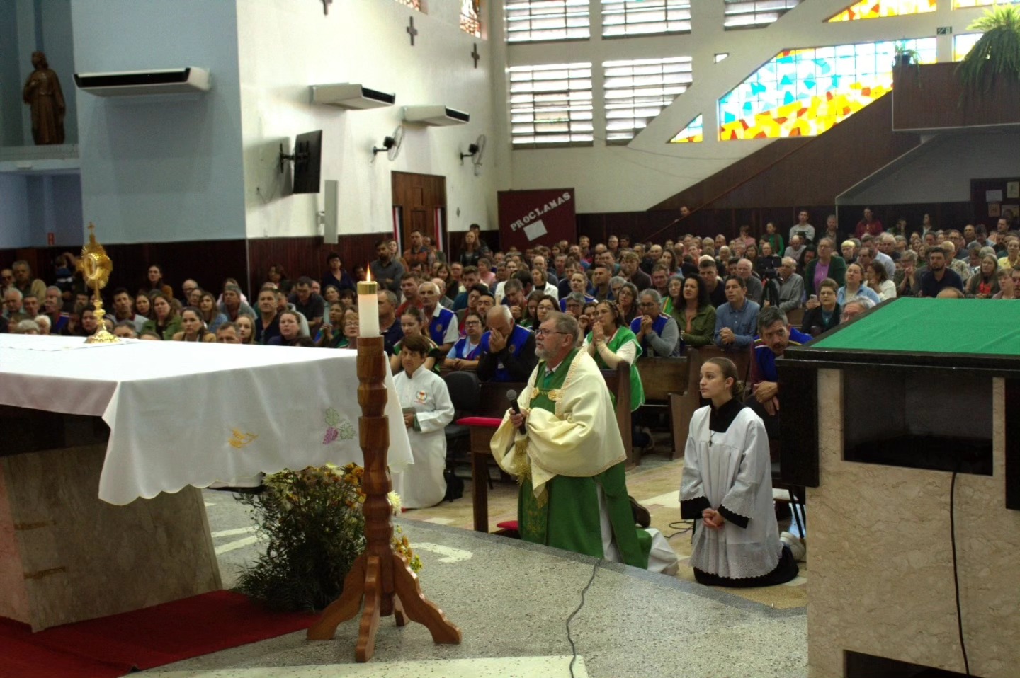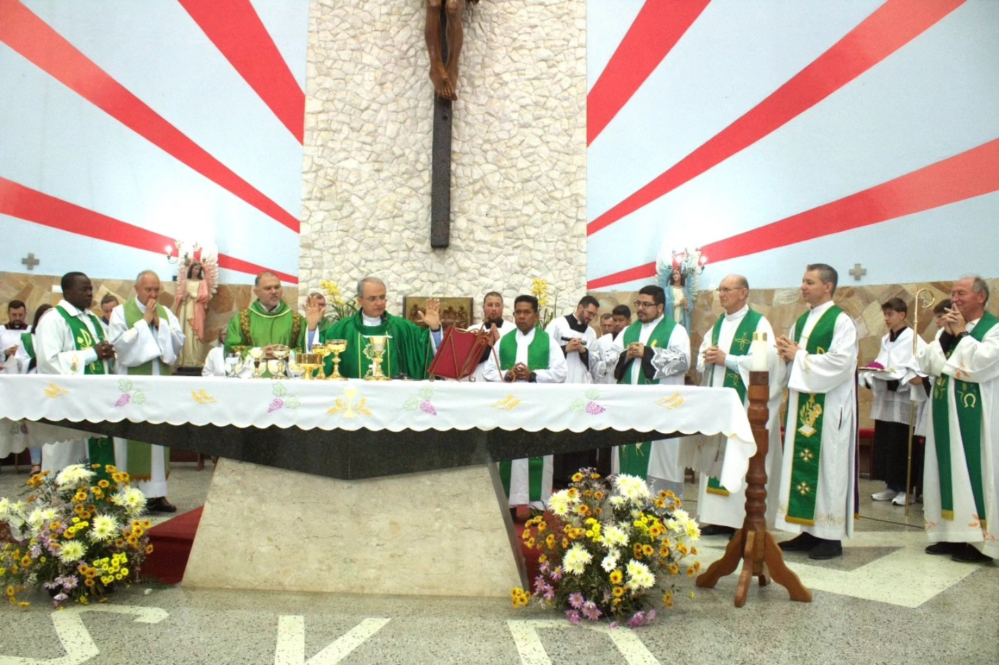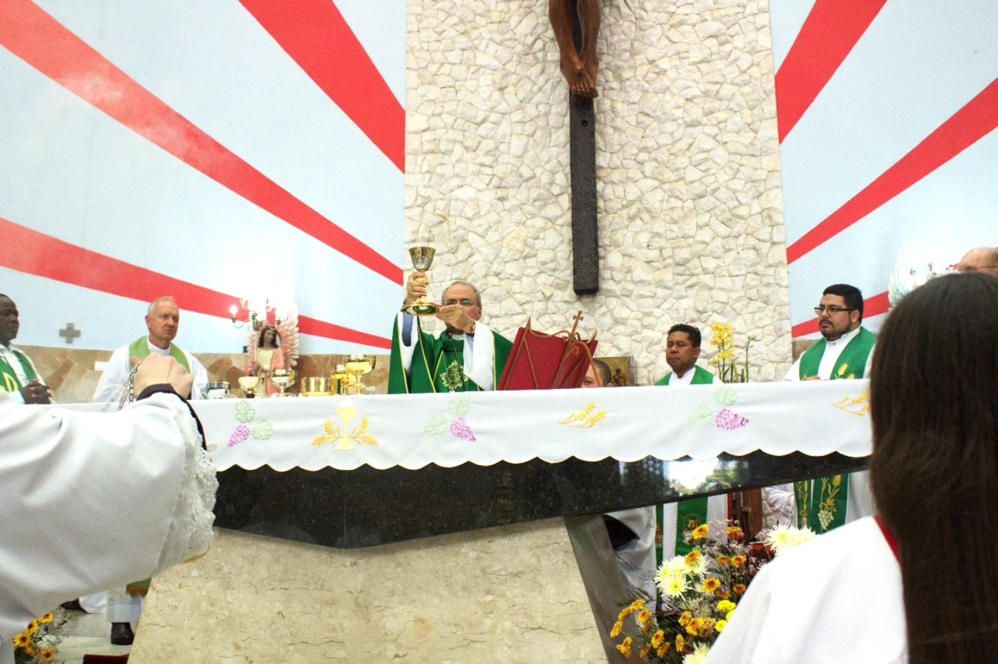 A peregrinação culminou com a Santa Missa, presidida por Dom Walter Jorge e concelebrada por todos os padres e diáconos presentes. Durante a homilia, o bispo diocesano refletiu sobre a essência missionária da Igreja, afirmando: