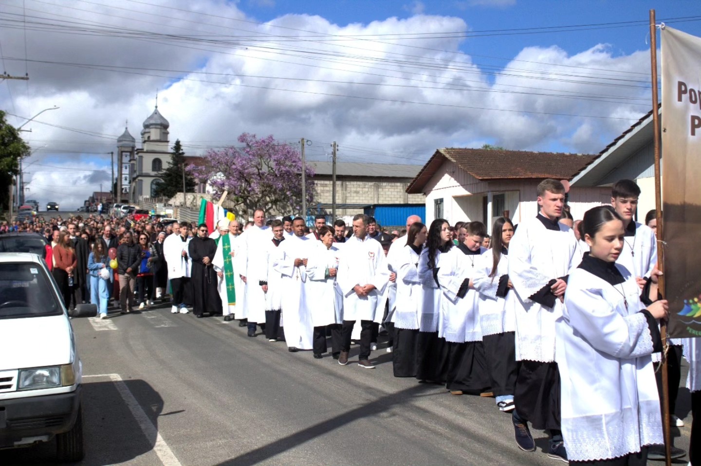 A peregrinação teve início às 07h30, com acolhida e café na Capela Santa Terezinha do Rito Ucraniano, seguida de oração inicial conduzida pelo Pe. Mateus e por Dom Walter Jorge. Durante o percurso, os fiéis rezaram o Santo Terço e entoaram cânticos de louvor, aprofundando o espírito de oração e comunhão.