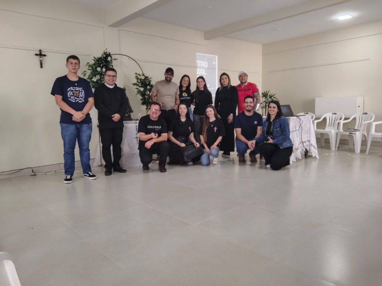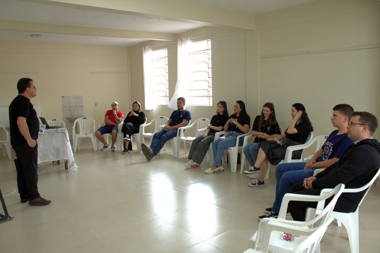O evento começou com um momento de animação conduzido por Eduarda M. Parastchuk, do Setor de Comunicação da Diocese, e Luis Parastchuk, proporcionando um ambiente acolhedor e dinâmico para todos os presentes. Em seguida, Pe. Ronaldo Rodrigues, assessor diocesano realizou a bênção inicial, dando início à formação.