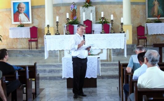 Na manhã da última quinta-feira, a Paróquia Nossa Senhora do Rocio, em União da Vitória, acolheu a última reunião do clero e dos coordenadores de catequese referente ao ano de 2025. O encontro reuniu padres, diáconos e coordenadoras da catequese das diversas paróquias da Diocese, que vieram partilhar, avaliar e planejar os trabalhos evangelizadores realizados ao longo do ano.