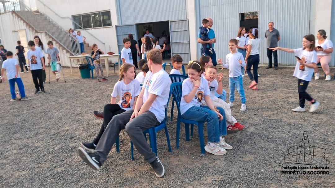 O encontro também contou com a animação do Cursilho Jovem, que contribuiu com música, dinâmicas e entusiasmo, envolvendo as crianças e tornando cada momento ainda mais vibrante e cheio de vida.