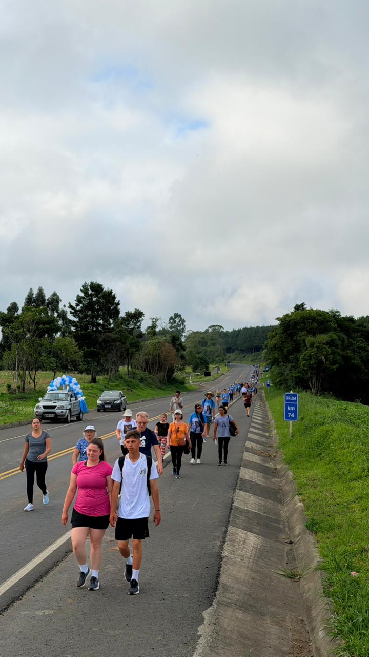 Entre os destaques deste ano esteve a participação especial do Grupo de Jovens de Rebouças, Amigos do Carlo Acutis, que se dividiram ao longo do trajeto, mas que caminhavam sempre com alegria, motivando e contagiando aqueles ao redor. Os reencontros pelo caminho, os abraços e o incentivo constante mostraram que a peregrinação ultrapassa o esforço físico, ela se torna experiência fraterna, espiritual e profundamente humana.