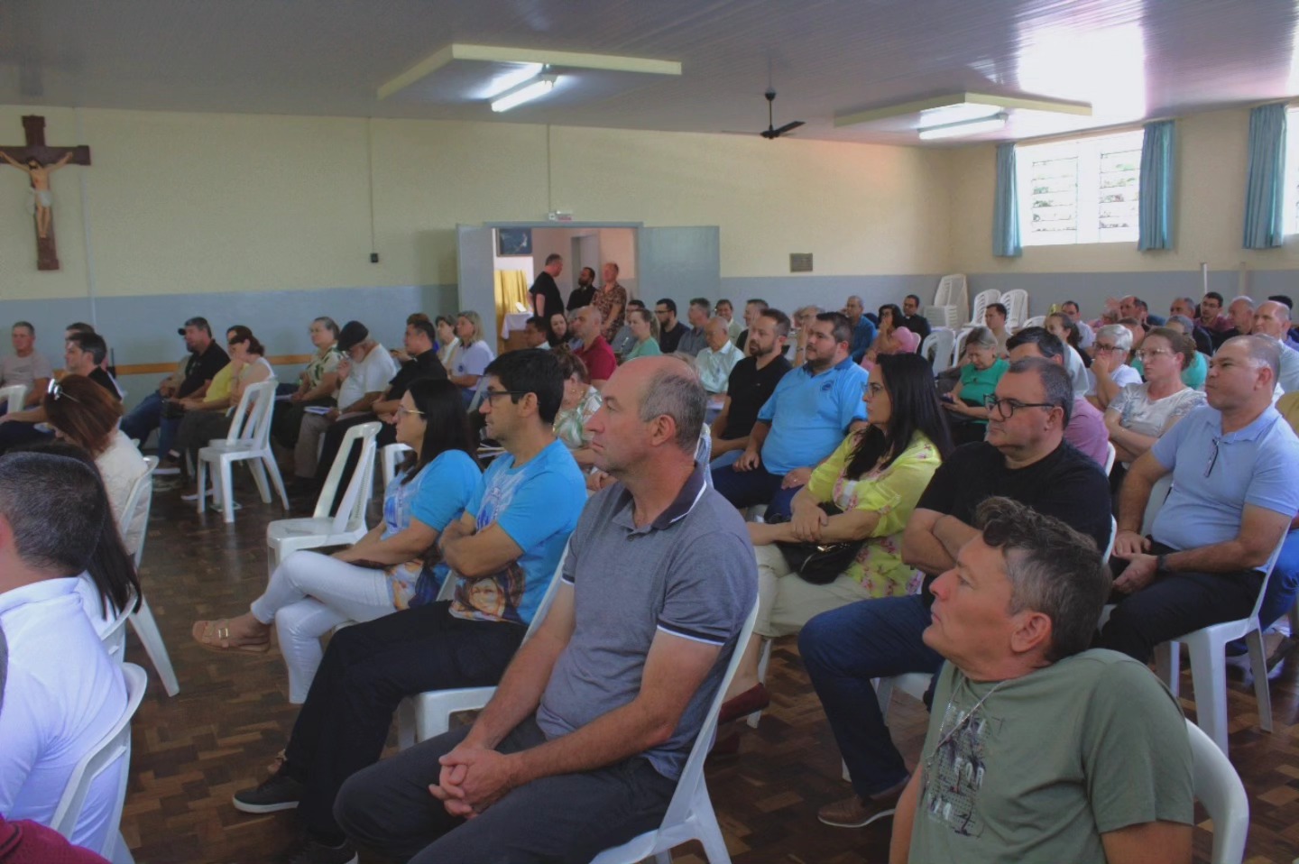 Dando continuidade, o Pilar da Caridade foi apresentado pelo Pe. Douglas Ribasz, com ênfase no dízimo e na pastoral caritativa articulada à Cáritas Diocesana. Ivone Pasquali apresentou iniciativas concretas realizadas no período. Dom Walter retomou o tema afirmando que “a Cáritas é um organismo muito forte, caminho para que a obra social tenha sustentação. Quem ainda não implantou precisa compreender sua grandeza. A Cáritas é uma preciosidade para o serviço da caridade.”