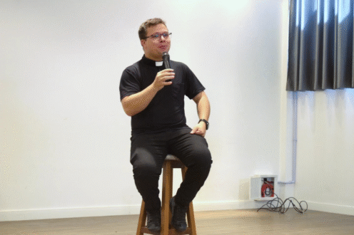 Durante sua fala, padre Ronaldo deixou uma mensagem encorajadora àqueles que servem na comunicação da Igreja: