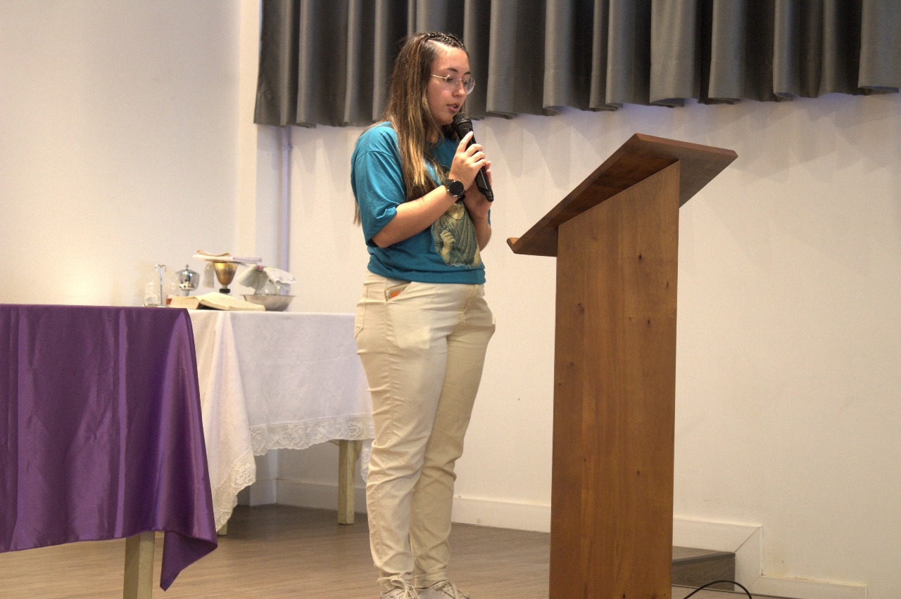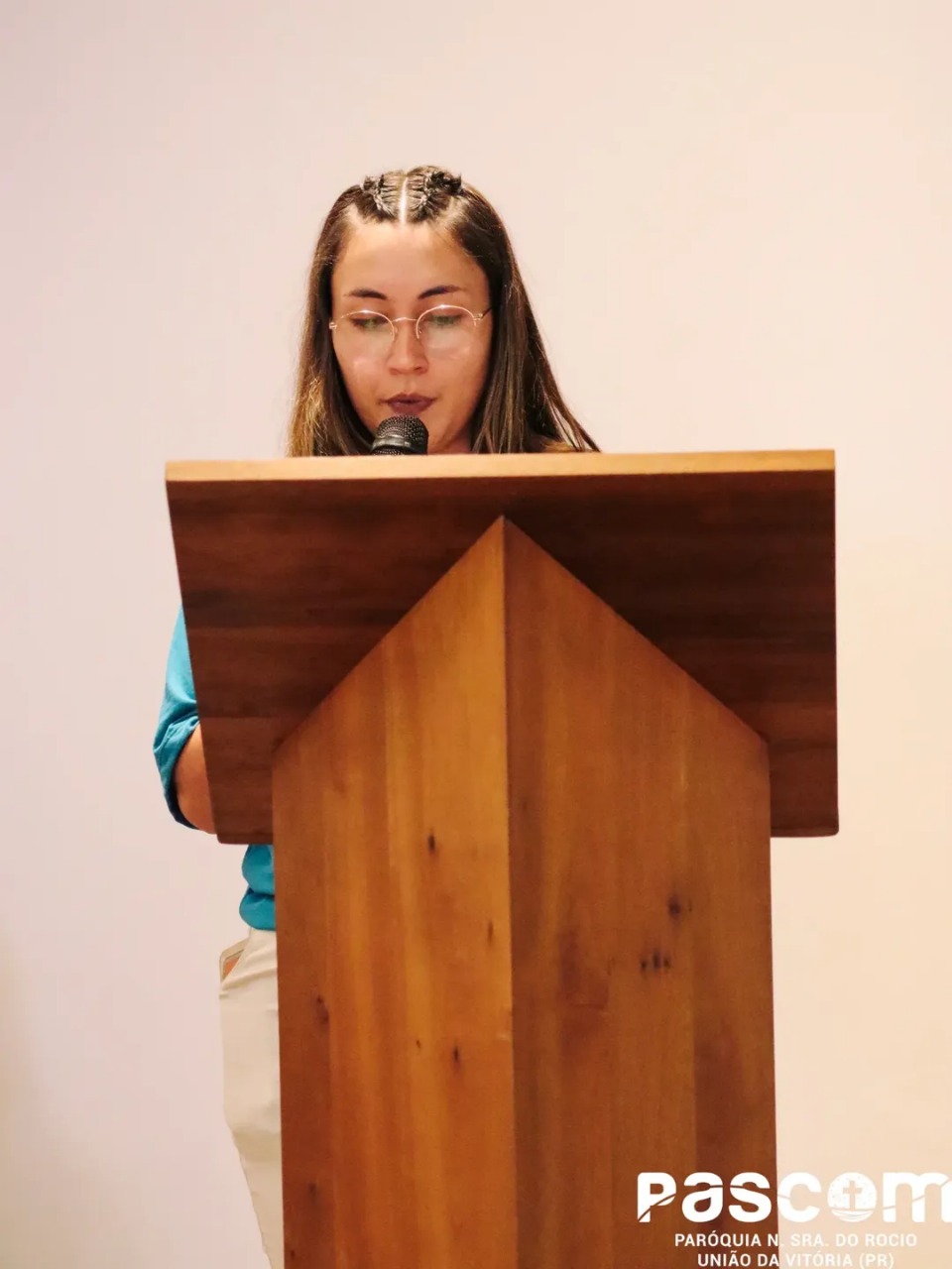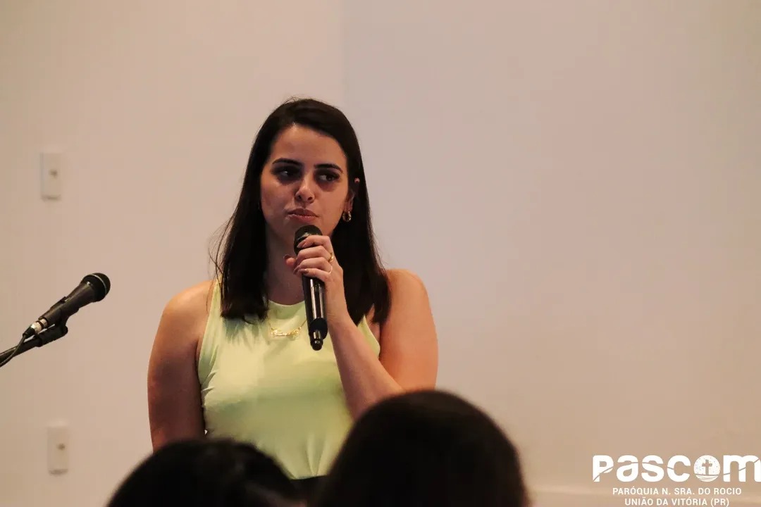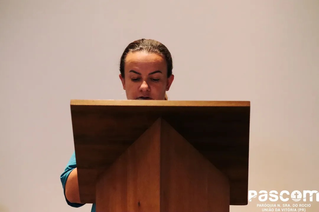 A acolhida foi conduzida por Eduarda Parastchuk, do Setor de Comunicação da Diocese, que deu as boas-vindas aos presentes, invocando a presença do Espírito Santo por meio da Oração do Espírito Santo. Em seguida, junto à Irmã Maria de Fátima, da Paróquia São João Batista, conduziu um breve momento de animação e integração entre os participantes.
