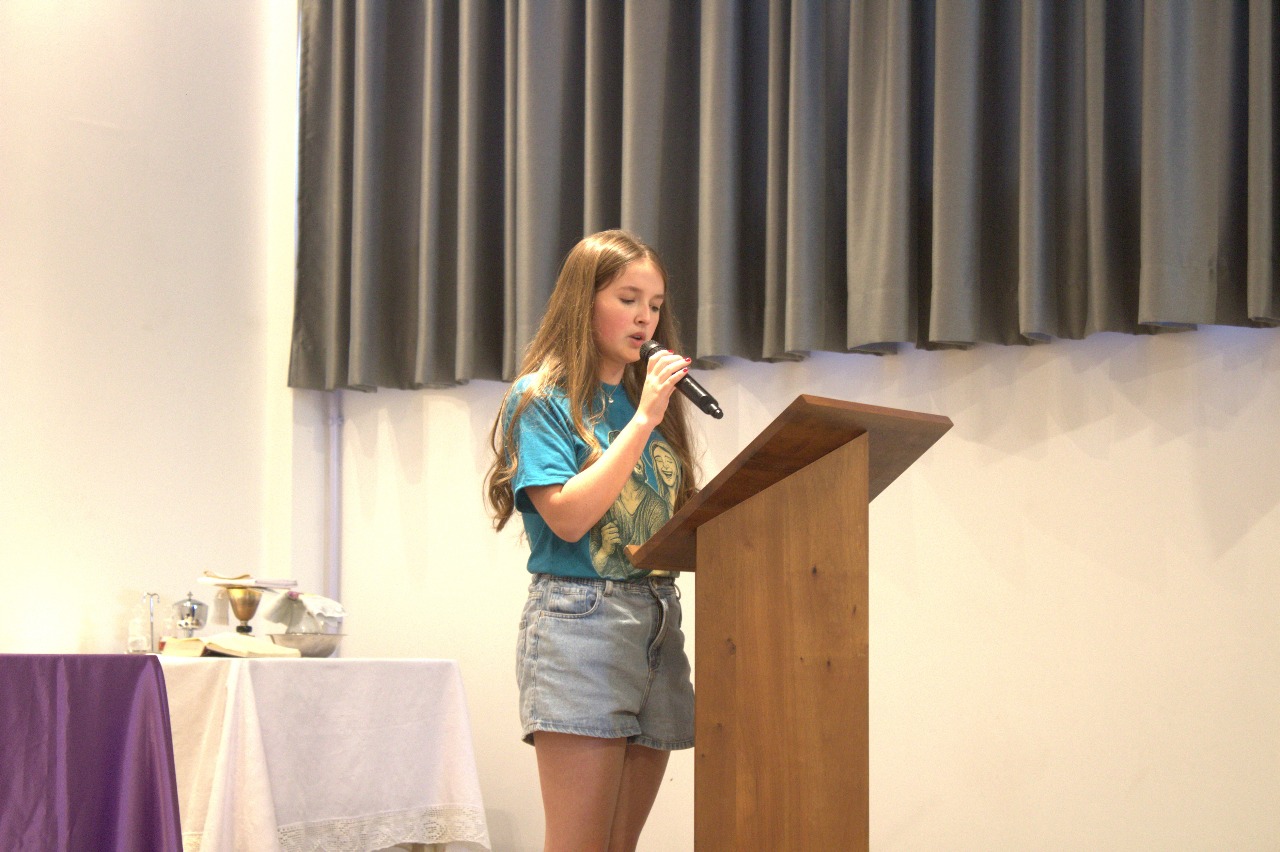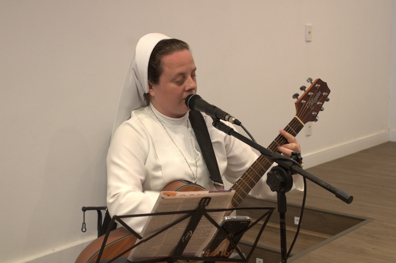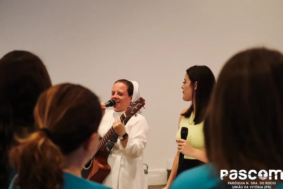 A acolhida foi conduzida por Eduarda Parastchuk, do Setor de Comunicação da Diocese, que deu as boas-vindas aos presentes, invocando a presença do Espírito Santo por meio da Oração do Espírito Santo. Em seguida, junto à Irmã Maria de Fátima, da Paróquia São João Batista, conduziu um breve momento de animação e integração entre os participantes.
