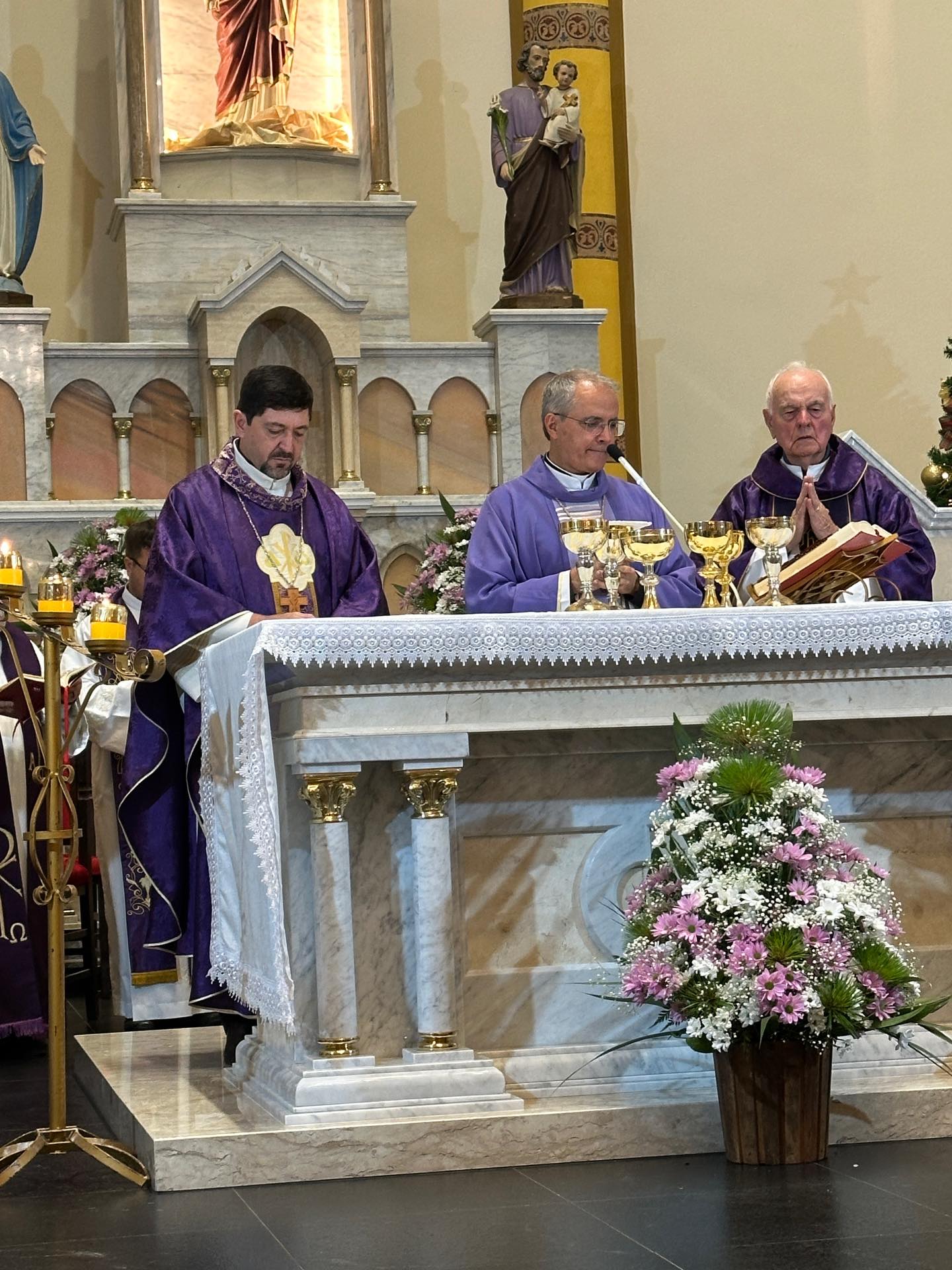 Estiveram presentes ainda os padres Sidnei, Ronaldo, Mauro, Mário, Alisson, Aquiles e Joviano, além dos diáconos Ulysses e Clarito, bem como seminaristas, que participaram deste momento especial de fé e despedida.
