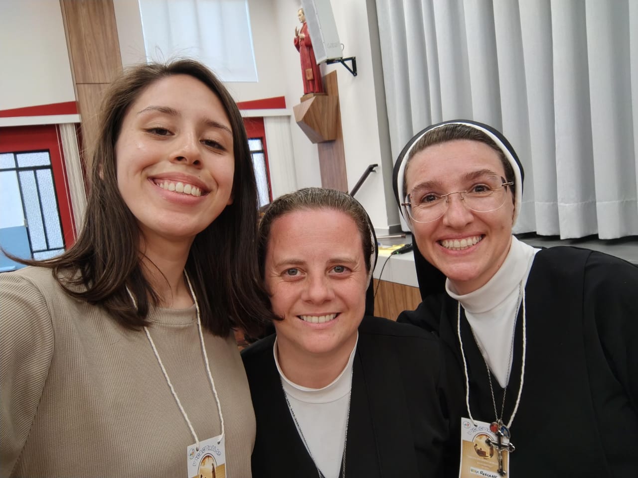 Desde a infância, Carla sempre teve contato com as religiosas, especialmente pela atuação das irmãs na paróquia. Esse vínculo se fortaleceu quando iniciou seus estudos na Escola Municipal São José, que na época era dirigida pelas irmãs, e também durante sua caminhada na catequese, onde a convivência mais próxima contribuiu para o amadurecimento de sua fé.