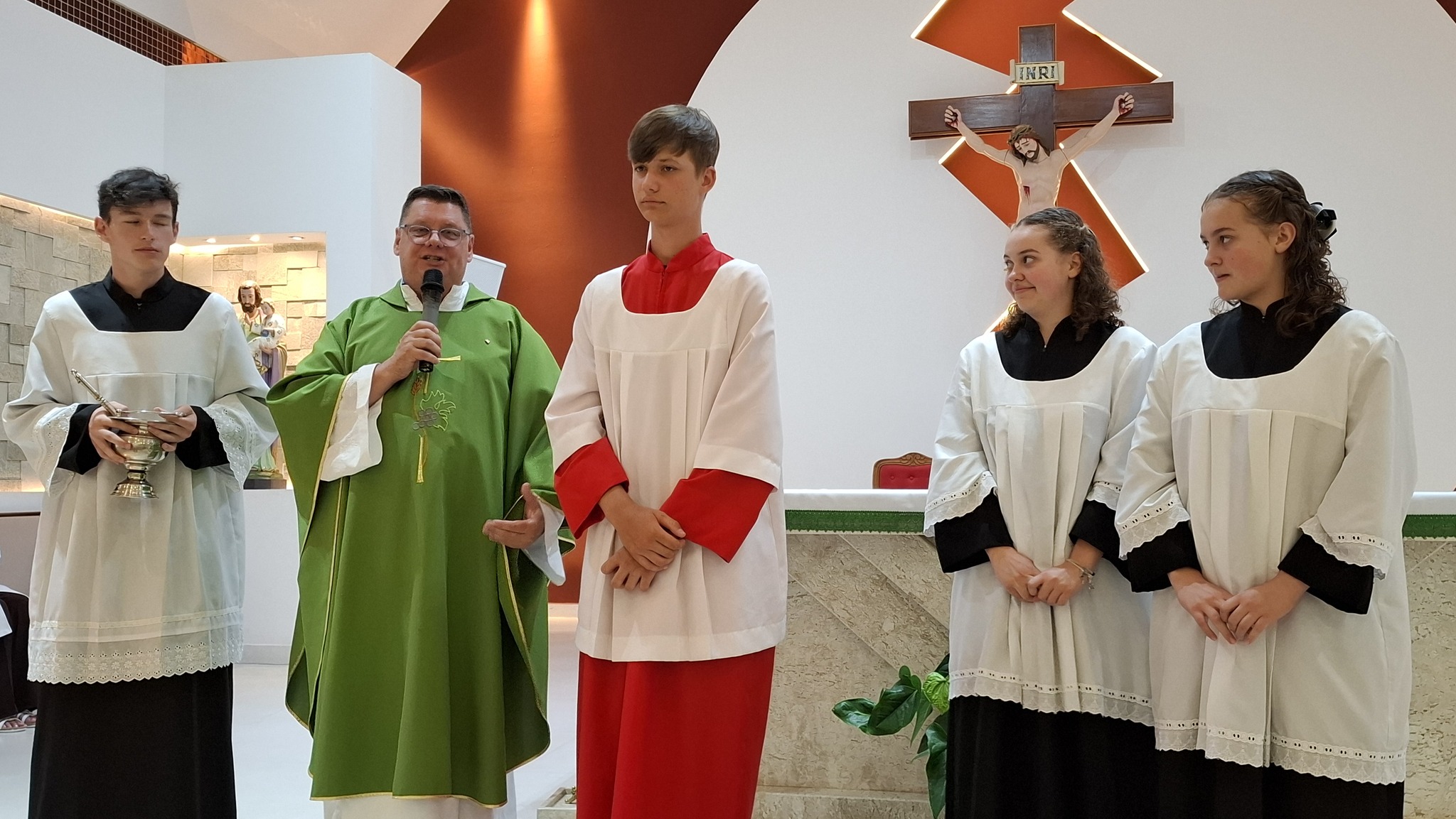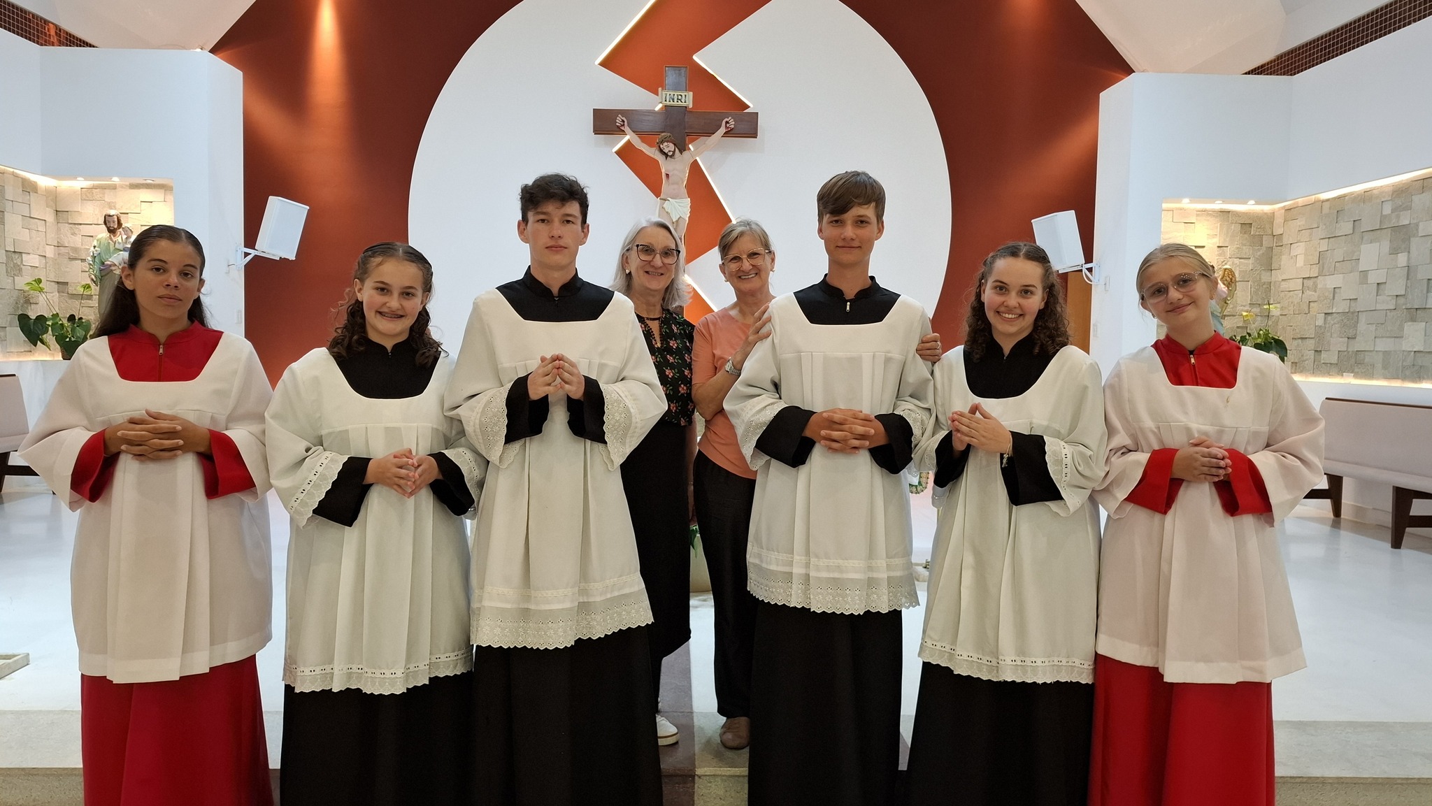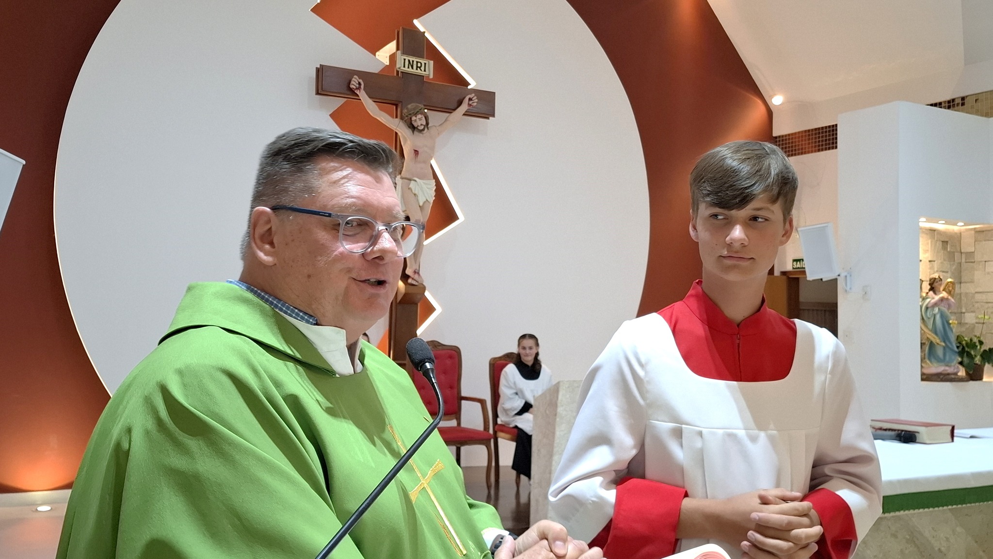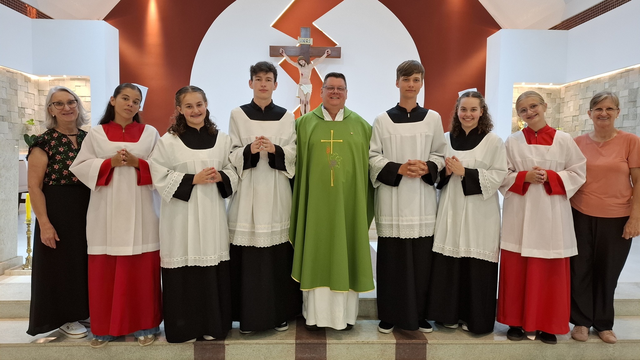 A celebração contou ainda com a participação das coordenadoras Marli e Vera, ministras extraordinárias da Sagrada Comunhão (MECES), responsáveis pela formação e orientação dos coroinhas e acólitos da paróquia.