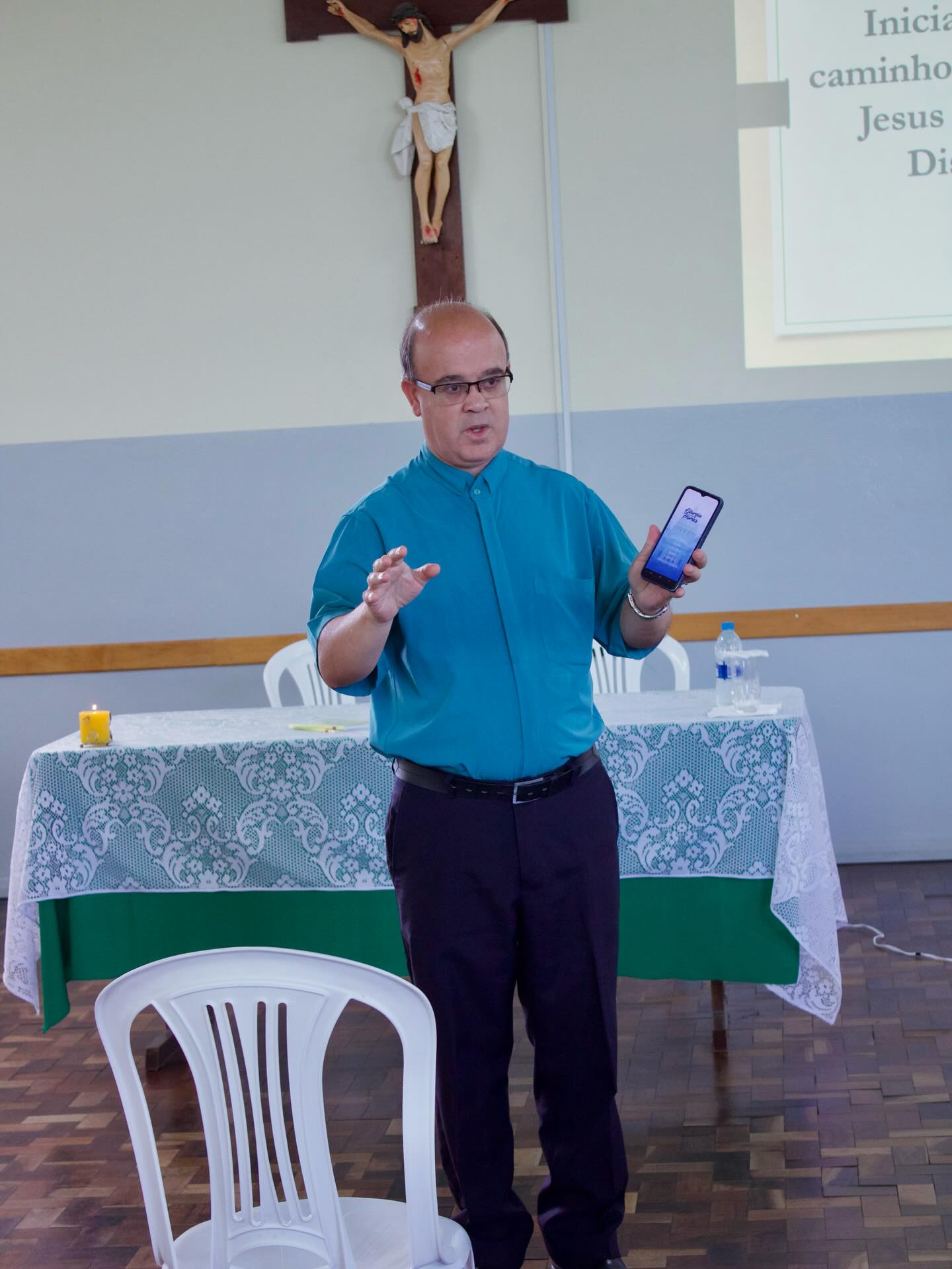 Durante sua fala, o Administrador Diocesano destacou a importância de os membros do conselho utilizarem o aplicativo de orações no celular, ressaltando que a ferramenta facilita o acesso aos conteúdos litúrgicos tanto nas reuniões quanto no dia a dia.
