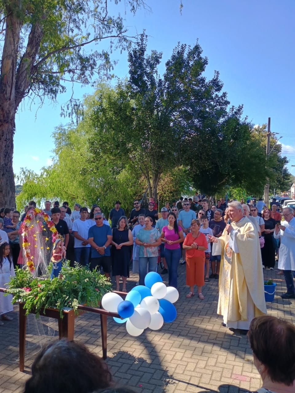 Durante a manhã, aconteceu a bênção das embarcações, ciclistas, motoristas, pedestres e velas, seguida pela procissão ao redor da capela e pela Santa Missa solene, que reuniu um grande número de fiéis em oração e ação de graças. Ao longo de todo o dia, a imagem de Nossa Senhora dos Navegantes permaneceu disponível para veneração, proporcionando aos devotos momentos de oração pessoal e agradecimento.