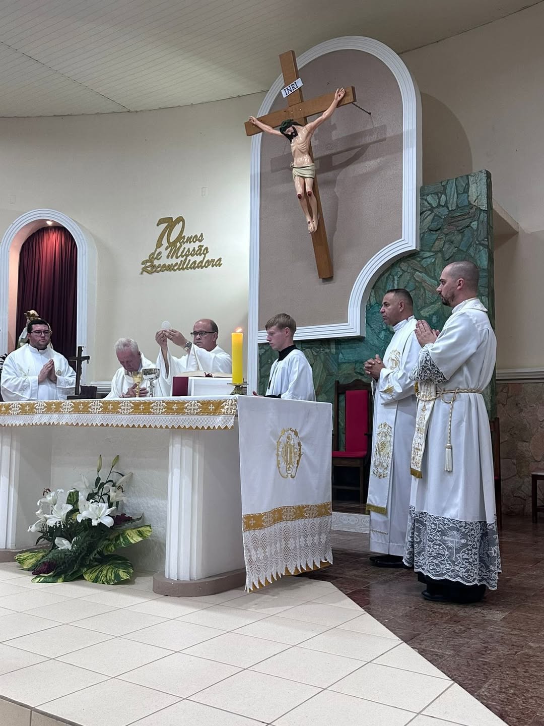 “Setenta anos de história, setenta anos de bênçãos, setenta anos de missão reconciliadora”, convidando todos a viverem este tempo com gratidão e renovação da fé. Também expressou o reconhecimento da Diocese aos missionários saletinos e a todos os leigos e leigas que contribuíram para a caminhada da paróquia.