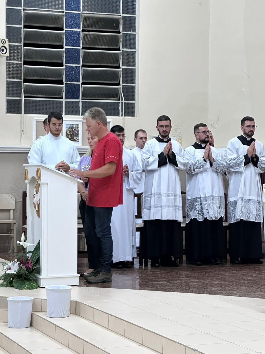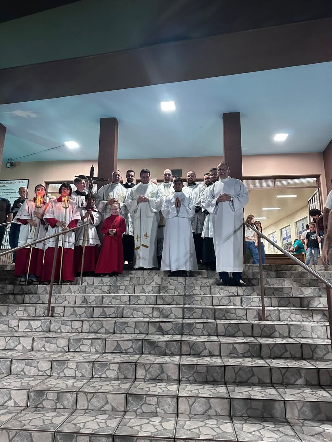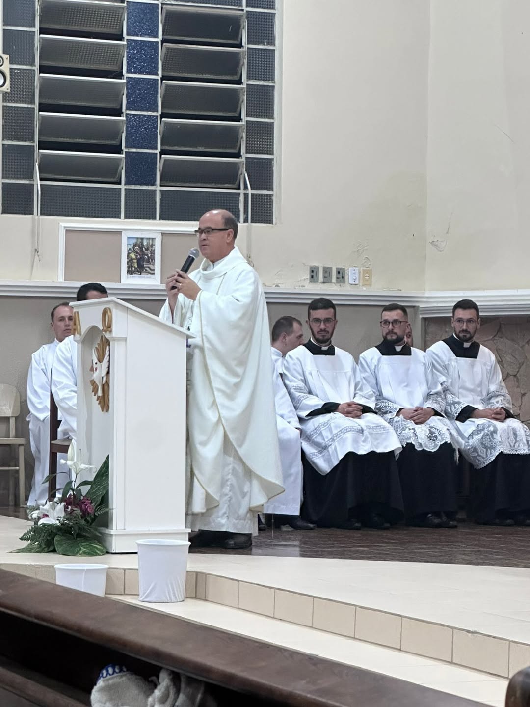A celebração foi presidida pelo administrador diocesano, padre Antônio Carlos Rodrigues, e concelebrada pelo administrador paroquial, padre Rafael, juntamente com os padres Cristian e João Henrique, contando ainda com a presença do diácono Walfrido Polsin e dos seminaristas. O momento reuniu fiéis, lideranças pastorais e membros da comunidade em uma expressiva manifestação de fé e unidade.