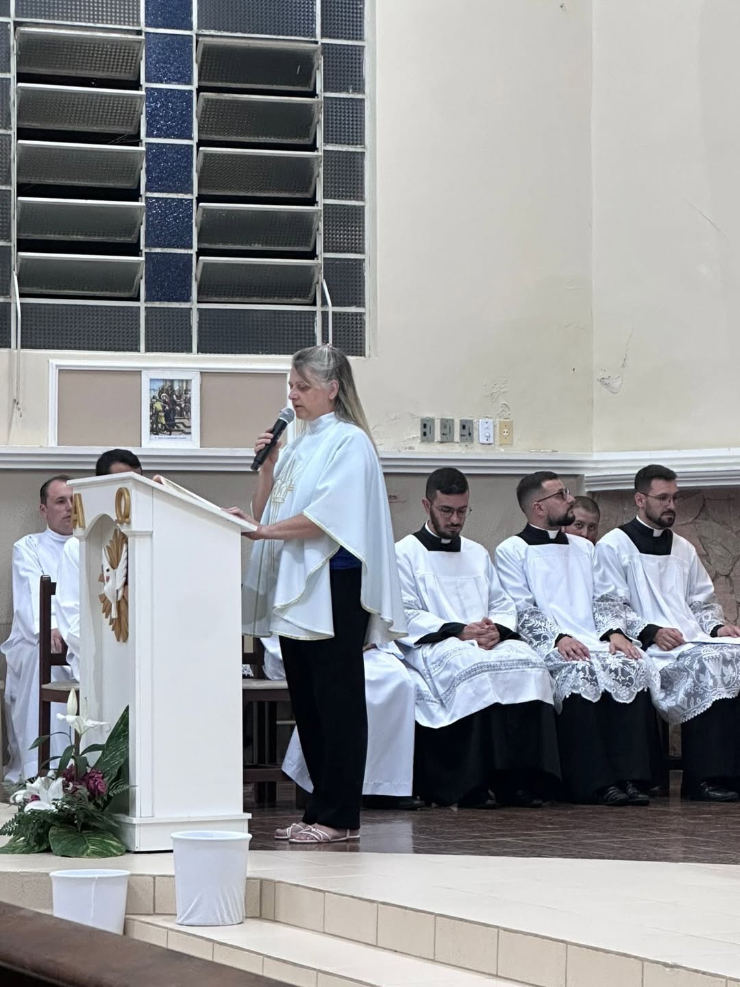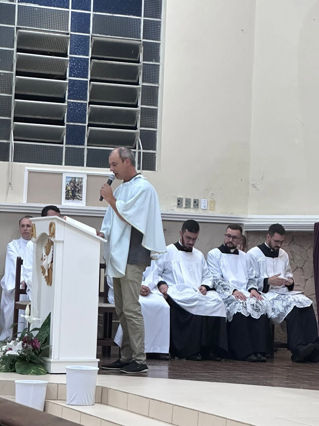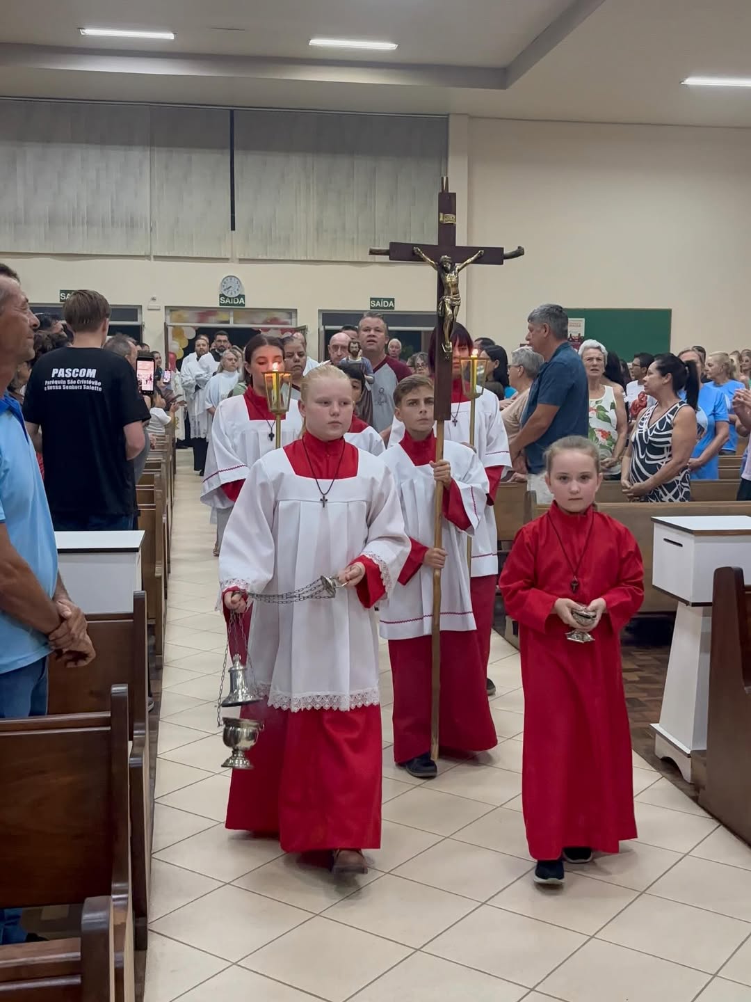 A celebração foi presidida pelo administrador diocesano, padre Antônio Carlos Rodrigues, e concelebrada pelo administrador paroquial, padre Rafael, juntamente com os padres Cristian e João Henrique, contando ainda com a presença do diácono Walfrido Polsin e dos seminaristas. O momento reuniu fiéis, lideranças pastorais e membros da comunidade em uma expressiva manifestação de fé e unidade.