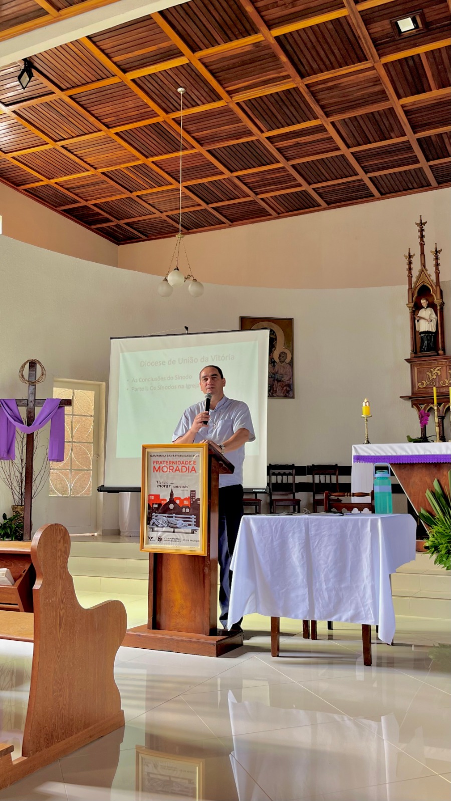 Padre Valdecir realizou durante toda a manhã a formação para os presentes na reunião, abordando as conclusões do Sínodo dos Bispos, convocado pelo Papa Francisco de 2021 a 2024. Padre Valdecir fez parte da Equipe Nacional do Sínodo, sendo ele o único padre do Sul do Brasil a compor a equipe.  O Sínodo teve como tema: ‘Por uma Igreja Sinodal: Comunhão, Participação e Missão’.